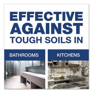 A unique two-in-one all purpose cleaner that combines the cleaning power of heavy-duty detergents with the stain-removal power of bleach. Contains patented cleaning technologies and no abrasives to clean the full range of tough kitchen and restroom soils like tracked-in dirt and scuffmarks. Task areas include customer and employee restroom surfaces, kitchens, the inside and outside of plastic trash containers, and greasy equipment containers.