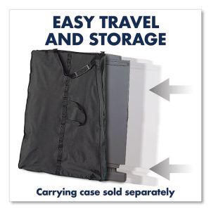 Lightweight and durable, this dual-purpose easel is great for any meeting space. Made of damage-resistant plastic, the easel is foldable for quick easy storage and stacking. A custom sized whiteboard accessory (sold separately) or 27 w x 34 h flipchart pad can be attached for an instant writing surface. Slide the pedestal base into the easel for easy storage and portability—72″ high easel collapses down to just 39″ high. Durable plastic is stain- and scratch-resistant. Spring-loaded pad retainer, molded handgrips, large accessory compartment. 28″ wide.
