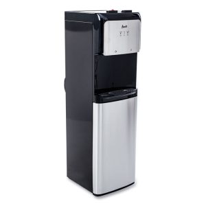 Offers instant access to ice cold and piping hot purified water with the touch of a button. Enjoy a cool, refreshing glass of water or prepare your favorite hot or chilled beverages, soups, or oatmeal with ease. Child safety latch on hot water faucet ensures peace of mind. Bottled water is stored conveniently inside the cabinet so there’s no need for lifting, flipping, or spilling. The empty bottle indicator lets you know when it’s time for a new bottle of water. Its simple clean look complements the decor of nearly any room in your home. This dispenser uses three- or five-gallon bottles (not included), which reduce waste from single-serve bottles.