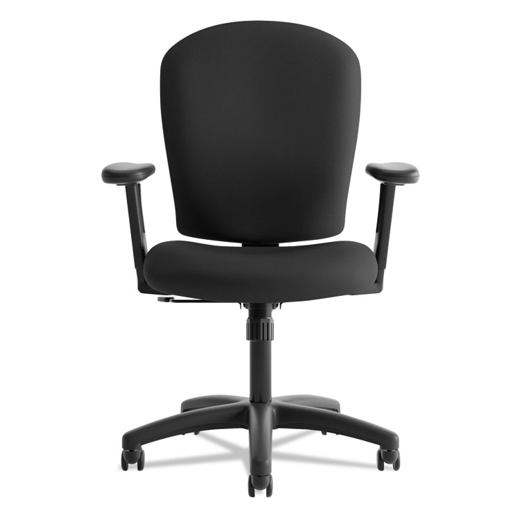 Perfect for moderate task environments. Waterfall seat edge reduces pressure for improved circulation. Custom comfort with height-adjustable padded arms. Five-star base with casters for easy mobility.