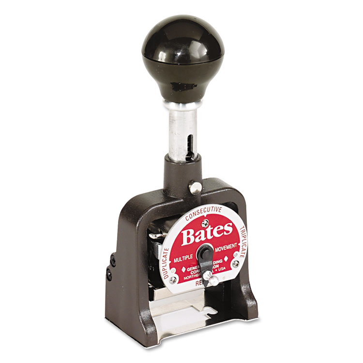 Ideal for jobs that require irregular numbering, this machine is capable of consecutive, repeat, duplicate and triplicate numbering. Dial setting provides quick, easy selection of movements. Stem lock prevents accidental release. One-piece steel wheels wear longer than brass, make sharp, clean impressions. Durable metal frame. Pre-inked and easy to re-ink; no need to remove pad.