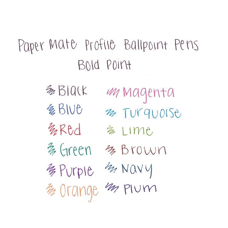 Experience fluid, effortless writing with the Paper Mate Profile Retractable Ballpoint Pen. The bold ink dries quickly to help reduce smudges for tidy, clean writing, while the click-advance retractable tip protects pockets and purses. With its smooth-flowing ink and soft contoured grip, this pen keeps you comfortable during extended writing sessions.