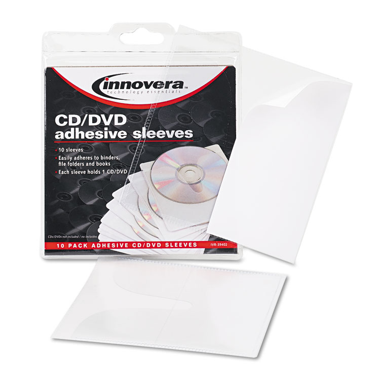 Clear plastic sleeves provide quick viewing of contents. Stick easily to binders, file folders, books and more; removable for repeated use. Hold CDs or DVDs.