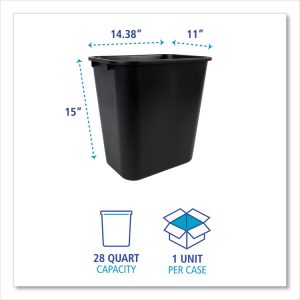 Economically priced, rectangular wastebasket is made of flexible plastic for maximum durability. Low-profile design makes it ideal for everyday use in the home or the office.