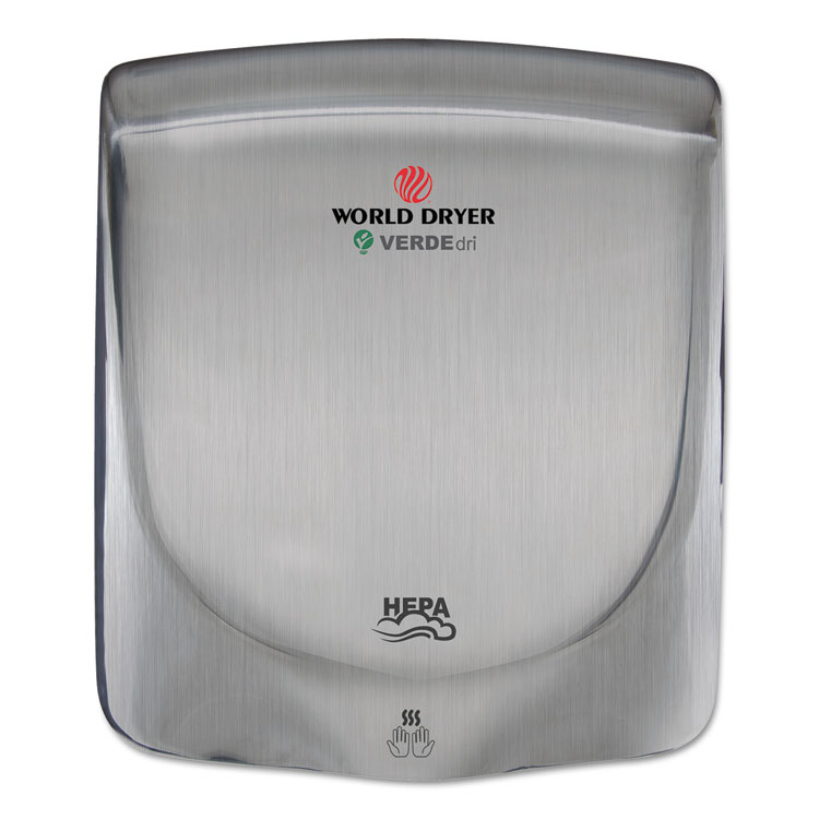 Features high speed 12 second dry time, ADA compliance and a surface mount. Includes HEPA filtration system. Incorporates SteriTouch® antimicrobial technology on the dryer, inhibiting the growth of bacteria, mold and fungus extending the dryer’s service life. VERDEdri is extremely energy efficient utilizing only 950 watts of power. The adjustable two speed motor controls and global universal voltage features accommodate any commercial washroom environment.