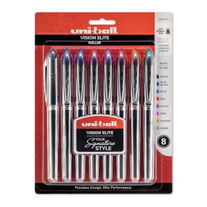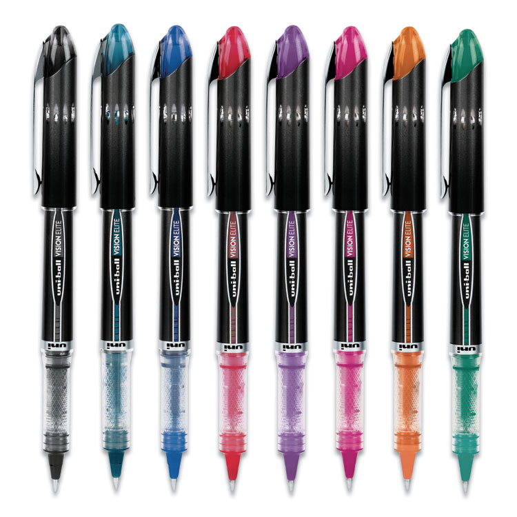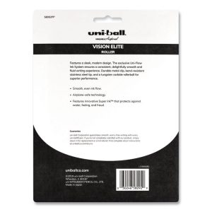 Create ideas as vividly as can be imagined with Vision Elite Rollerball Pens from uni-ball featuring a bend-resistant stainless steel tip and a tungsten carbide rollerball. Capped roller pens deliver smooth, intense lines with unparalleled definition – useful for note taking, list making, signing checks and legal documents, and even uniquely embellishing creative writing projects. Innovative uni Super Ink technology effectively entraps the gel ink into the paper, producing fraud, fade and water-resistant documents that resist check washing or bleaching. These Vision Elite pens have a special design that withstands cabin pressure variances without leaking, making them useful for travelers. Exclusive Uni-Flow Ink System ensures a consistent, delightfully fluid writing experience, and a translucent window ensures that you don’t run out of ink unexpectedly. Express your signature style with the sleek, modern design and elite performance of uni-ball’s Vision Elite Rollerball pen – no matter the altitude.